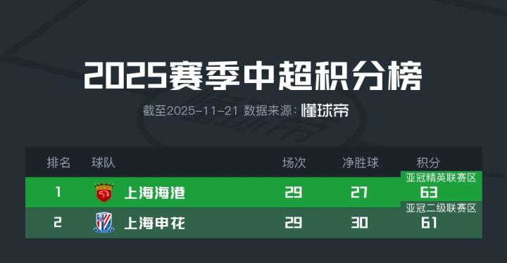 争冠区:上海海港、上海申花