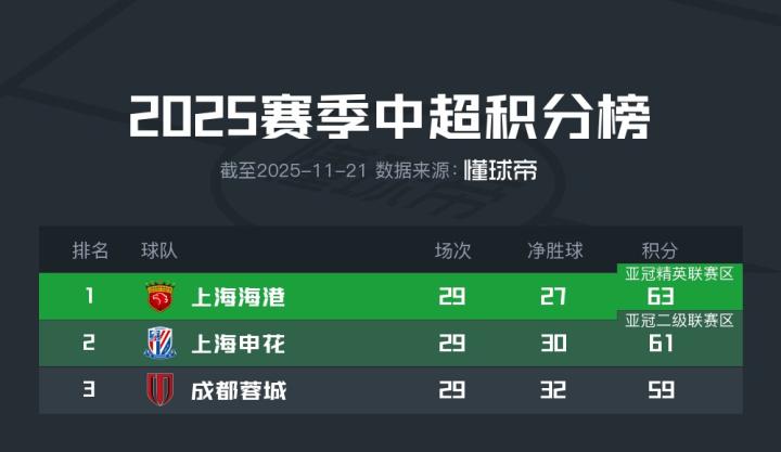 海港领先成都4分,这让他们至少已经确保可以获得下赛季亚冠资格。只要末轮取分,他们将在夺冠的同时锁定下赛季亚冠精英联赛的直通名额。