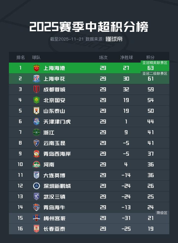 今天下午15:30,中超最后一轮全部8场比赛即将同时打响,2025赛季中超即将落幕。在最后一轮比赛中,我们将会见证本赛季冠军的诞生,也决定最后一支将暂时告别中超的球队。