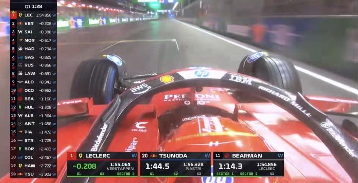 勒克莱尔新的一圈来到榜首,角田过线后成绩依旧垫底!