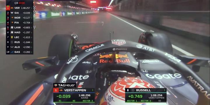 维斯塔潘随后冲线,领先塞恩斯0.039秒,来到杆位的位置;