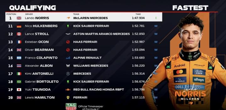 第1-第5:诺里斯、维斯塔潘、塞恩斯、拉塞尔、皮亚斯特里