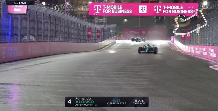赛道的状况非常糟糕,所有的车手都进站换上全雨胎来跑Q1!