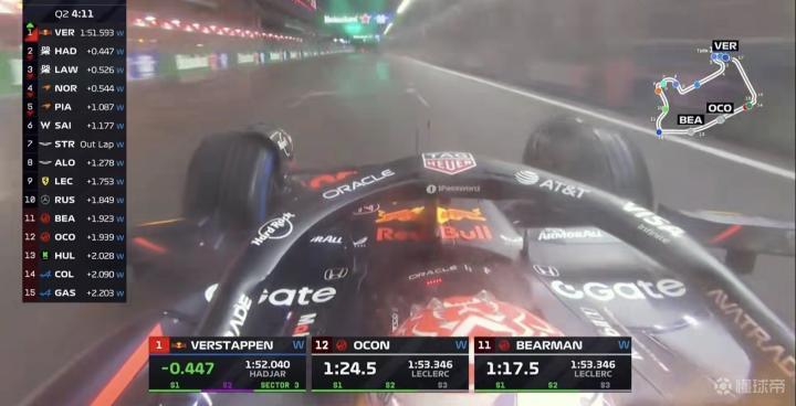 维斯塔潘逃离淘汰区上到第5,勒克莱尔尚未做出一个有竞争力的单圈成绩;