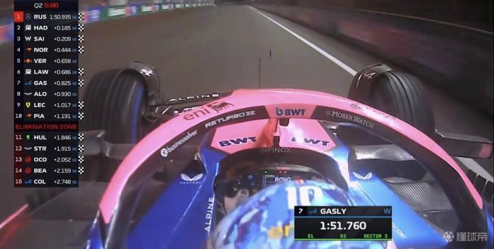 加斯利的最后一圈三段个人最快,成功刷掉霍肯博格,代表Alpine晋级Q3!