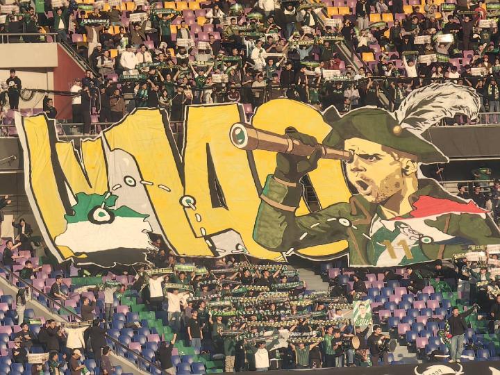 另一幅tifo则是把弗兰克描绘为带领浙江队前进的船长形象。在英语中,“队长”和“船长”的写法都是“captain”。tifo背景也展示了弗兰克代表浙江的出场数字:140场。