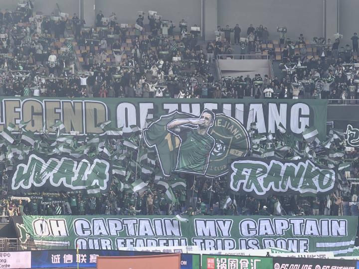 送别队长,浙江球迷打出两幅tifo致敬弗兰克
