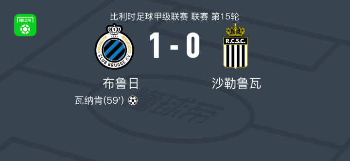布鲁日1-0沙勒鲁瓦,瓦纳肯制胜球