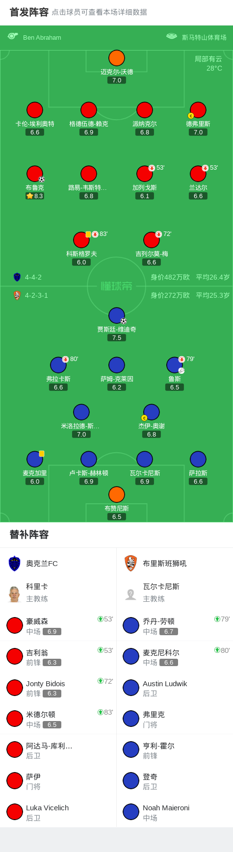 奥克兰FC1-1布里斯班狮吼,布鲁克先拔头筹,贾斯廷-维迪奇扳平比分