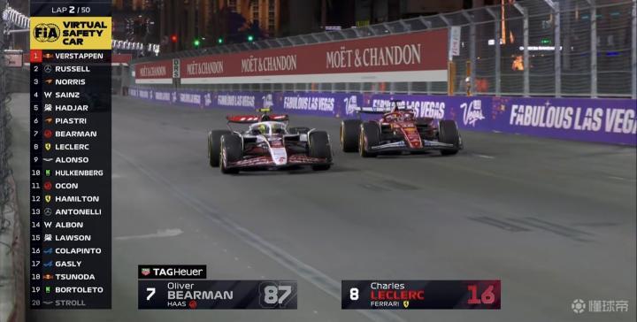 第16圈:皮亚斯特里在VSC退出后反应迅速,在14号弯前超越哈贾尔回到第6;