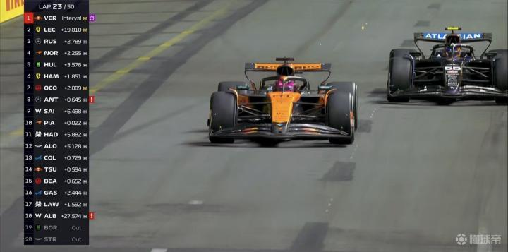 第23圈:诺里斯,塞恩斯进站一停,阿隆索超越角田;