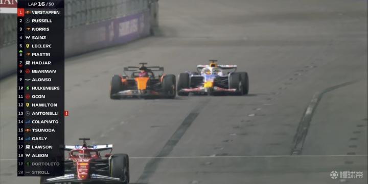 第1圈:诺里斯在1号弯走大被维斯塔潘超越,中游集团发生了一些碰撞事故;
