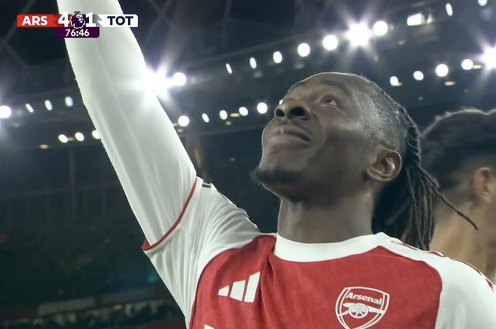 英超第12轮北伦敦德比,阿森纳主场对阵热刺,埃泽上演帽子戏法,成为近两年来首位在英超戴帽的阿森纳球员。