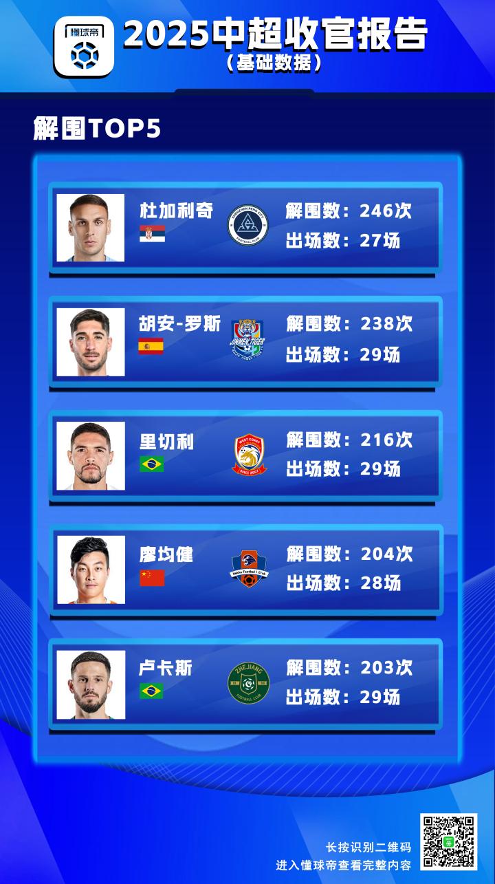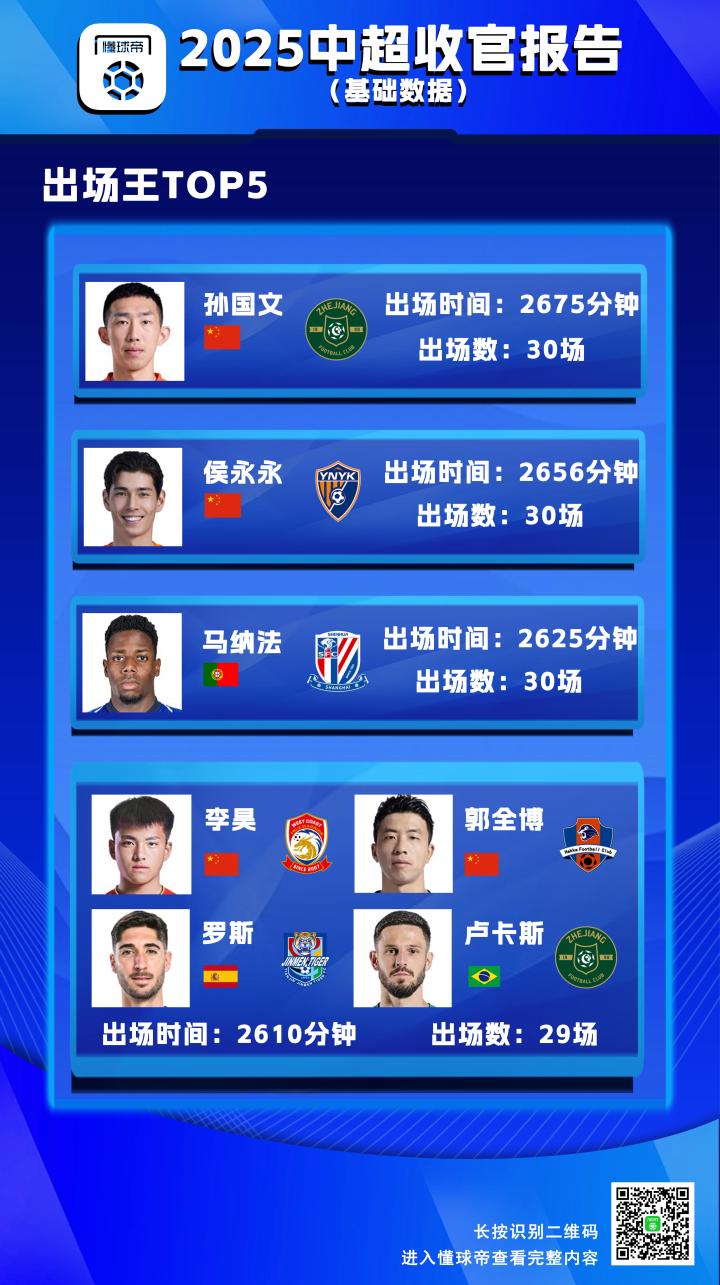 联赛出场王TOP5