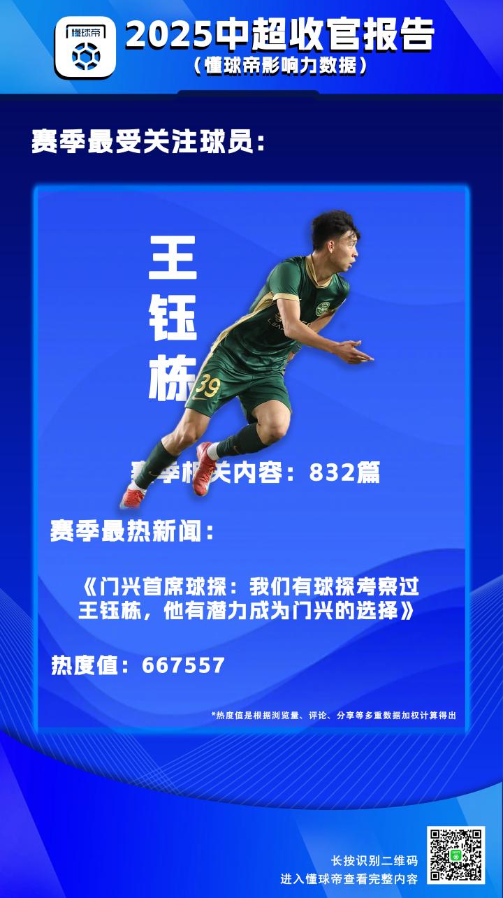 而关于王钰栋的最受关注的新闻,是一则门兴球探对于王钰栋的表达。这也体现出了人们对于王钰栋外出留洋的期待与渴望。
