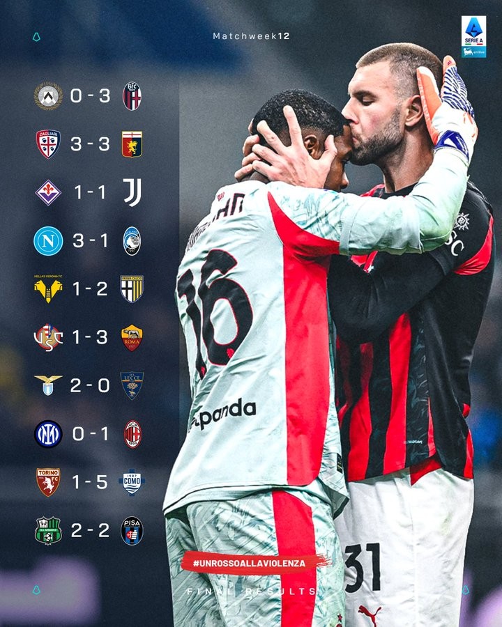 意甲第12轮赛果: