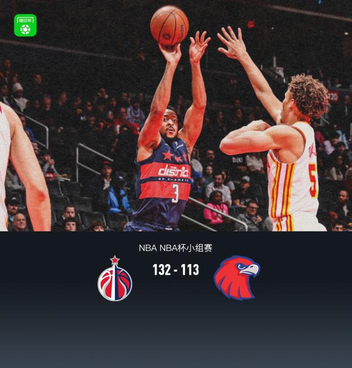 北京时间11月26日NBA杯小组赛,华盛顿奇才对阵亚特兰大老鹰。半场奇才77-55老鹰,最终奇才132-113老鹰。