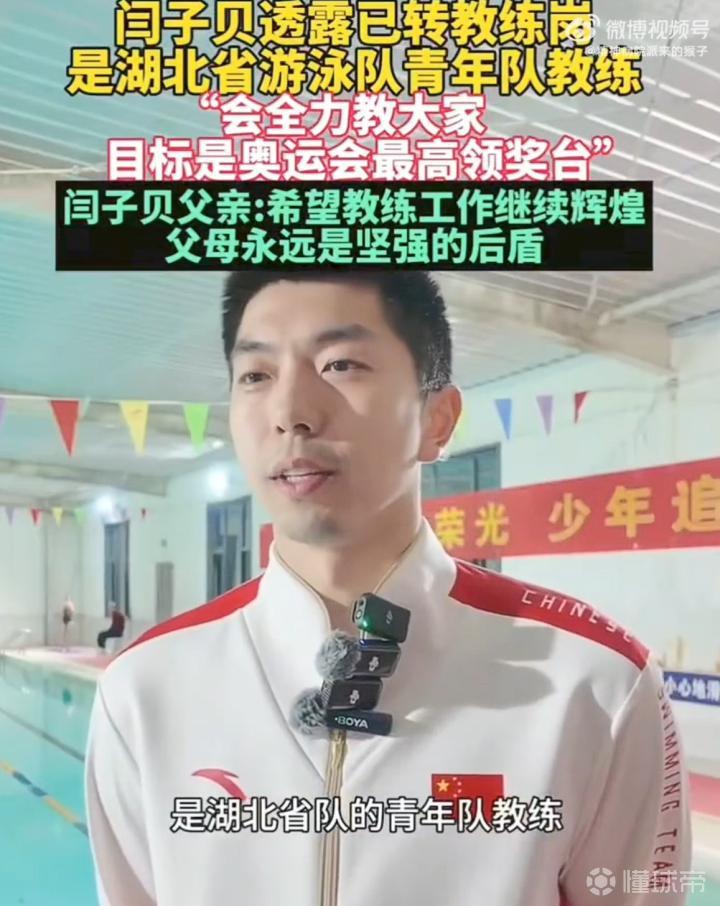 11月24日,据襄阳媒体报道,游泳名将闫子贝表示:已申请退役,目前担任湖北青年游泳队教练。