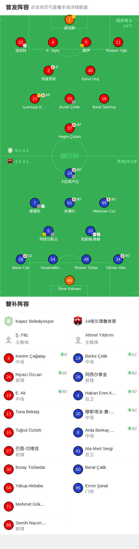 第63分钟,24埃尔津詹体育球员德雷利助攻卡拉库卢丘打入一球。