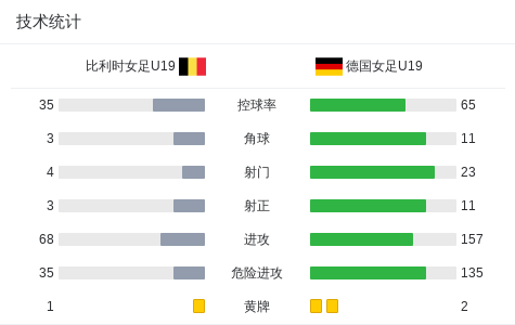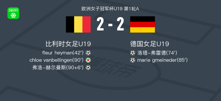 在欧洲女子冠军杯U19第1轮A组比赛中,比利时女足U19与德国女足U19展开激烈对决。比赛进程中,比利时队率先打破僵局,凭借内林克的助攻,fleur heyman成功破门,为球队取得领先。此后德国队展开反击,洛塔-弗雷德攻入一球,将比分扳平。随后marie gmeineder再下一城,帮助德国队实现反超。比赛进入尾声阶段,比利时队获得点球机会,但chloe vanbellingen主罚未能命中。补时阶段,弗洛-赫尔曼斯完成关键进球,最终双方以2比2握手言和。