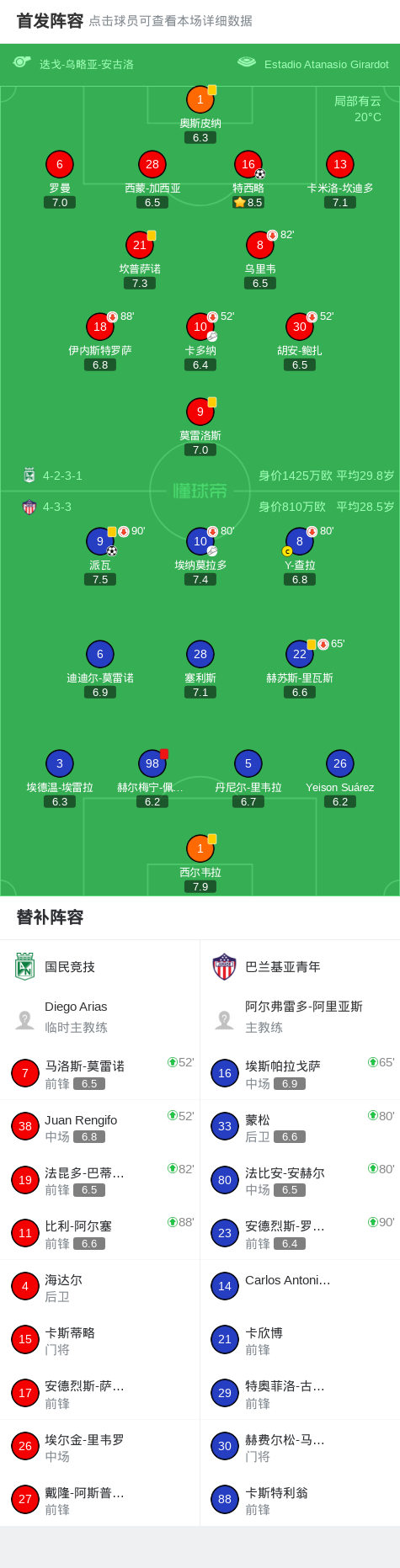 90分钟战报:国民竞技1-1战平巴兰基亚青年,双方进入加时赛
