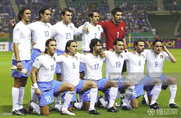 时间来到2000,kappa刚刚从nike手里抢来的意大利队,成为了kappa当时最大的赞助对象,意大利队也取消了球员球衣上不许出现品牌logo的奇怪规定。这一利好马上让基数巨大的意大利球迷顿时认识了kappa这个品牌。而意大利也表现不俗,在不被看好情况下,杀入欧洲杯决赛,虽然被法国绝杀,但当时kappa生产的意大利队球衣,也成为了不朽的经典。2002年韩日世界杯,意大利队悲情出局,但kappa的紧身球衣成为了当时最时髦的款式。