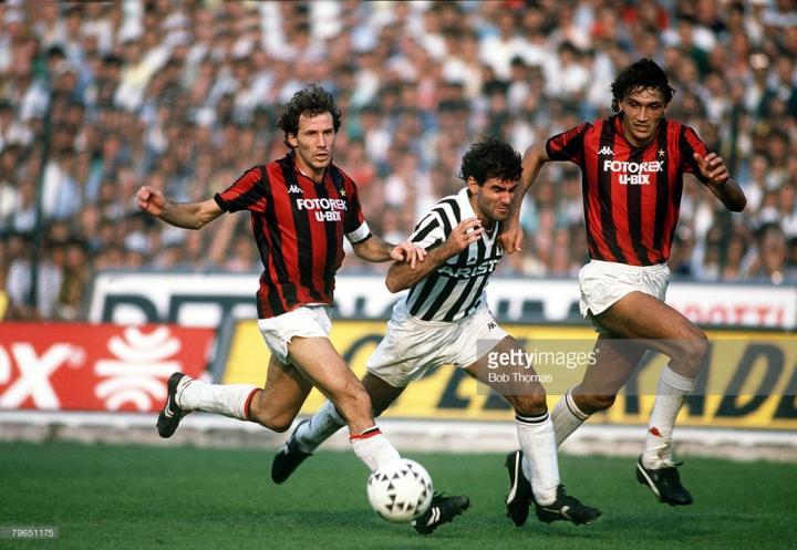 更不可思议的是,kappa居然还赞助过ac米兰不少年,从1986年到1989年欧冠夺冠年,可能很多人只记得米兰的辉煌都是穿着adidas和lotto得到的,殊不知荷兰三剑客初来乍到,穿的是kappa的球衣。巴雷西第一次举起欧冠奖杯,也穿的kappa。