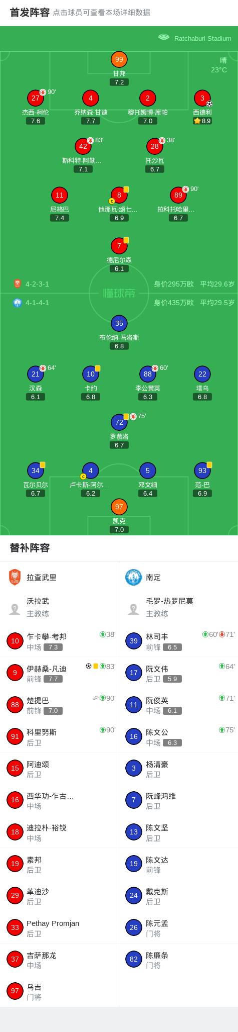 拉查武里2-0南定,西德利建功,伊赫桑-凡迪锁定胜局