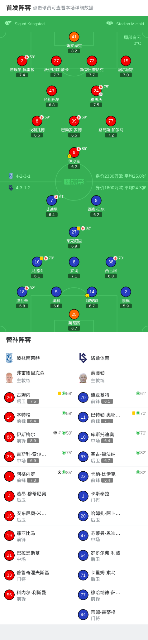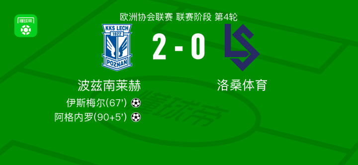 波兹南莱赫2-0洛桑体育,伊斯梅尔破门,阿格内罗锁定胜局