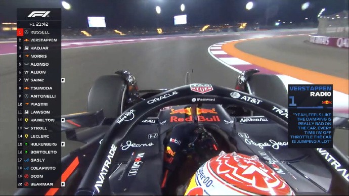 维斯塔潘反馈赛车的减震系统也存在问题,一松油就会产生剧烈跳动