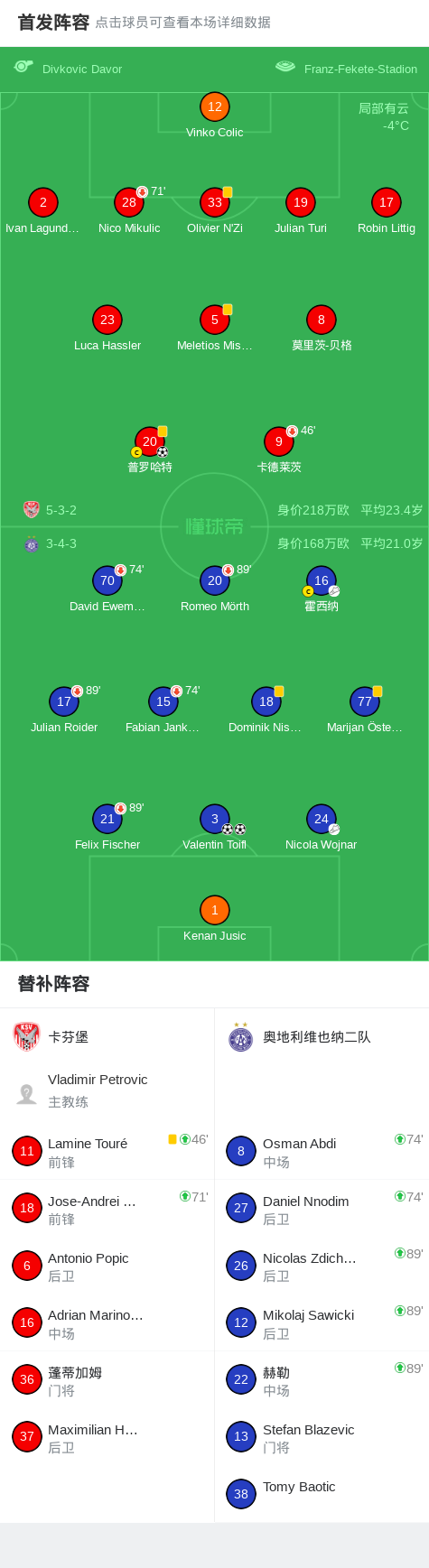 第87分钟,奥地利维也纳二队球员Nicola Wojnar助攻Valentin Toifl打入一球。