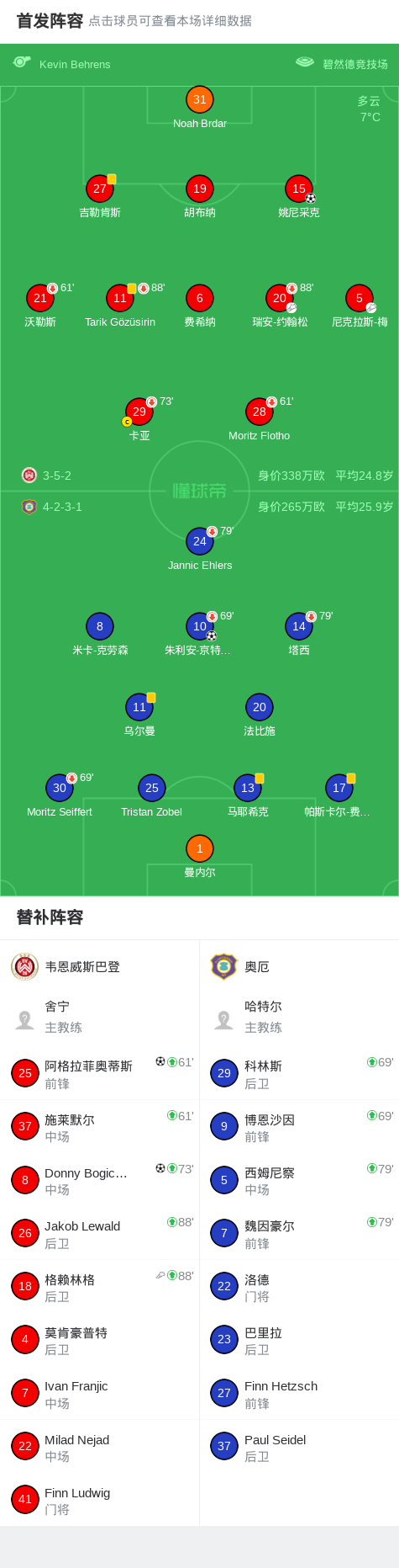 第53分钟,韦恩威斯巴登球员尼克拉斯-梅助攻姚尼采克打入一球。