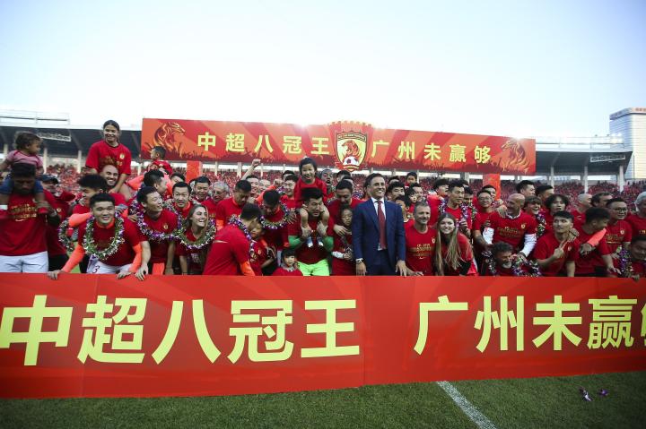 2019年12月1日,中超第30轮,广州恒大3-0完胜上海申花,9年内8次赢得中超冠军,实现了八冠王成就。赛后,恒大众将庆祝中超第8冠,但这也是恒大的中超最后一冠。