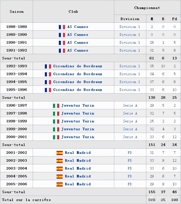 齐内丁-齐达内:95(506场95球0.188效率,法甲34球&意甲24球&西甲37球)
