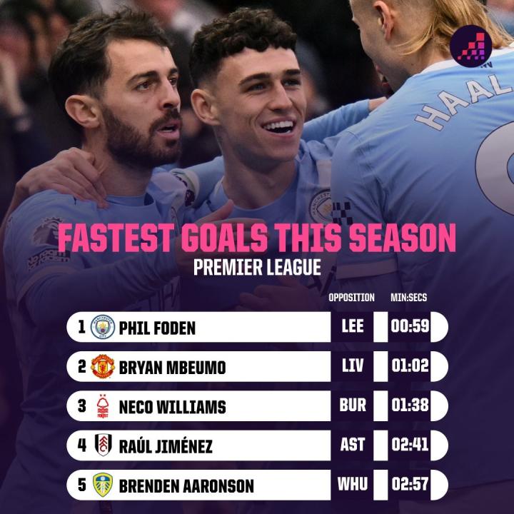 开场59秒破门,福登打入本赛季英超最快进球ETChalmers @懂球帝2025-11-29 23:18英超第13轮,曼城主场对阵利兹联,开场第1分钟福登破门为曼城取得领先,据统计,这是本赛季英超最快进球,也是首粒在开场第1分钟打入的进球。本赛季英超最快进球排行1 福登 vs利兹联 00:592 姆伯莫 vs利物浦 01:023 内科-威廉斯 vs伯恩利 01:384 劳尔-希门尼斯 vs阿斯顿维拉 02:415 阿伦森 vs西汉姆联 02:57展开更多