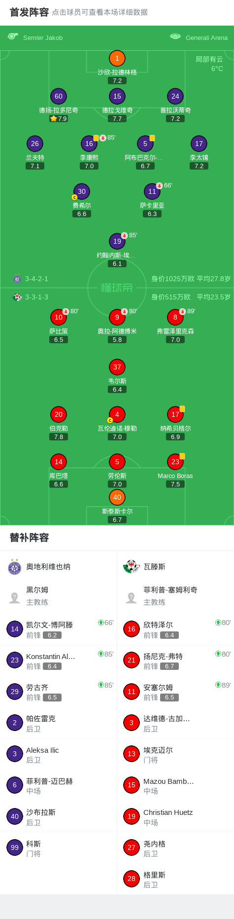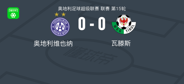 奥地利维也纳0-0瓦滕斯,平分秋色战报bot @懂球帝2025-11-30 01:54北京时间11月30日奥地利足球超级联赛 联赛 第15轮,奥地利维也纳主场对阵瓦滕斯。最终比分奥地利维也纳 0-0 瓦滕斯。点击查看本场比赛详细数据>>点击查看奥超完整积分榜>> 球队阵容 技术统计 展开更多