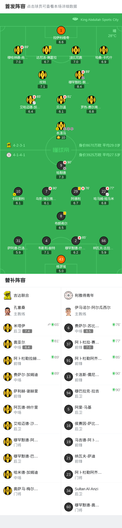 吉达联合4-1大胜利雅得青年,本泽马帽子戏法,穆罕默杜-敦比亚破门