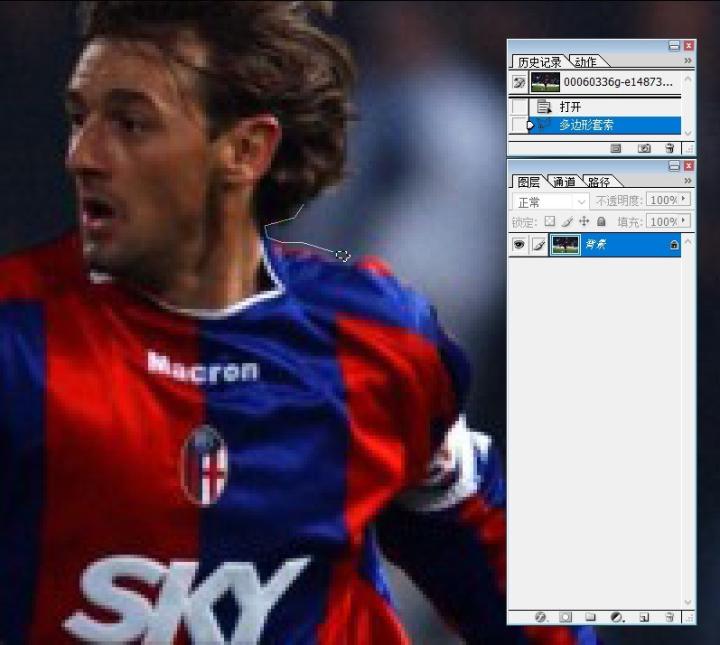 找到一张我认为最帅的西格诺里的图片,考虑到背景不算很复杂,设置羽化为2,使用多边形套索开始抠图大吉(钢笔工具也可以用)