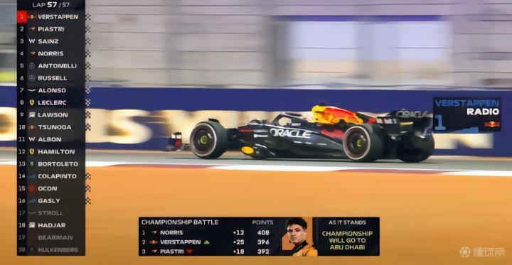 北京时间12月1日,F1卡塔尔大奖赛正式结束,维斯塔潘成功夺冠,皮亚斯特里第2,诺里斯第4。本站过后,维斯塔潘升至车手积分榜第二位,诺里斯仍然处于第1但优势进一步缩小至12分,皮亚斯特里第3。