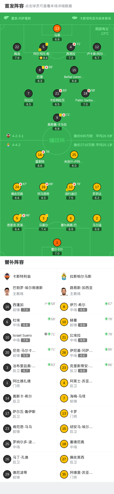 第76分钟,卡斯特利翁球员西蓬加助攻Israel Suero打入一球。