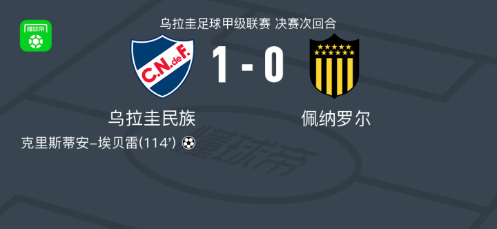 乌拉圭民族1-0佩纳罗尔,克里斯蒂安-埃贝雷读秒绝杀