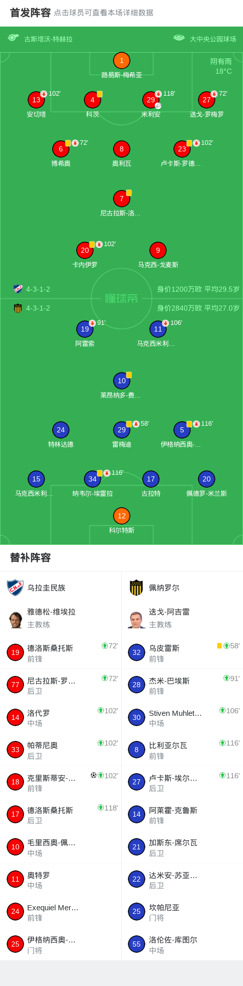第114分钟,乌拉圭民族球员米利安助攻克里斯蒂安-埃贝雷打入一球。