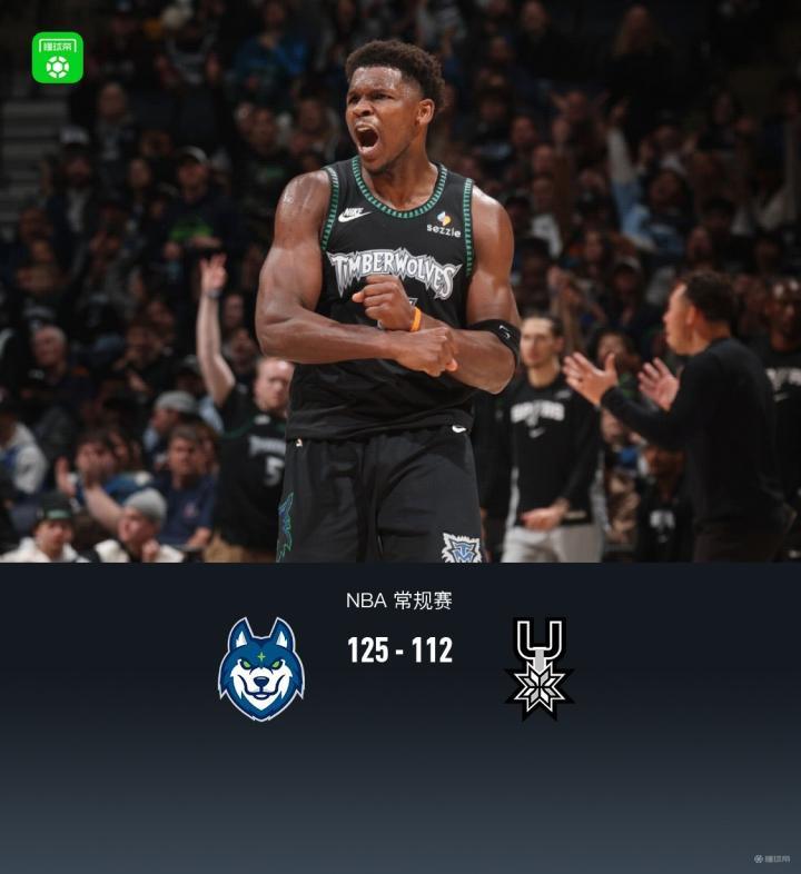 第四节森林狼迪文琴佐拿下13分,马刺瓦塞尔拿下5分,最终森林狼125-112战胜马刺