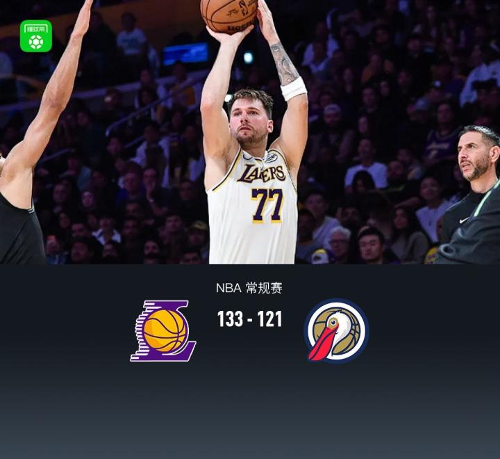 湖人133-121鹈鹕迎取7连胜,东契奇34+14+7,里夫斯33+8