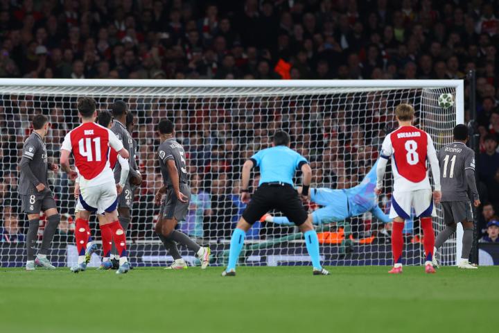 2025年4月8日,欧冠1/4决赛首回合,阿森纳主场3-0完胜皇家马德里。下半场,赖斯连续轰入两脚任意球世界波,尤其是第二粒任意球更是被形象的评价为“贴邮票进球”,让世界最佳门将库尔图瓦成为背景。