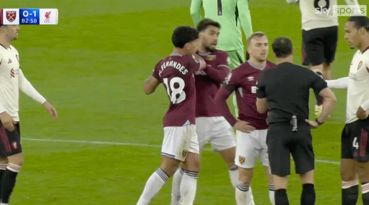 比赛中,他的西汉姆联队友马特乌斯-费尔南德斯试图阻止他,但徒劳无功。俱乐部队长鲍恩以及从利物浦球门跑过来调解的巴西同胞阿利松同样未能成功——在这个下午,没有人能阻止帕奎塔的坏脾气。