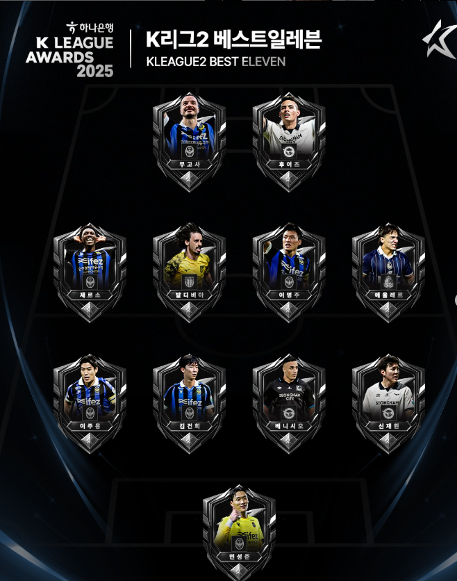 DF:李周勇(仁川),金健熙(仁川),维尼西奥(城南),申材源(城南)