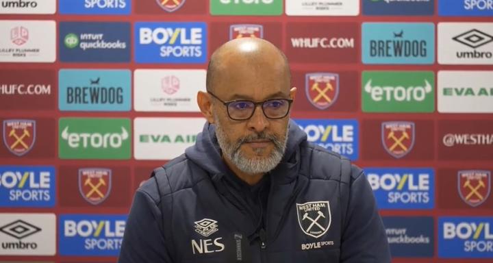 英超第14轮,西汉姆联将客场挑战曼联。铁锤帮主帅努诺周二出席赛前发布会,谈到帕奎塔被红牌罚下、曼联的近况等话题。