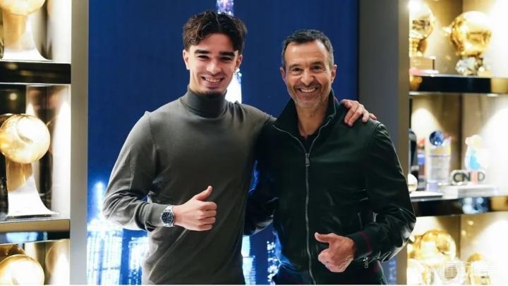 这位波尔图新星马特乌斯-米德在父母陪同下与门德斯会面并合影,门德斯已经成为他的经纪人。