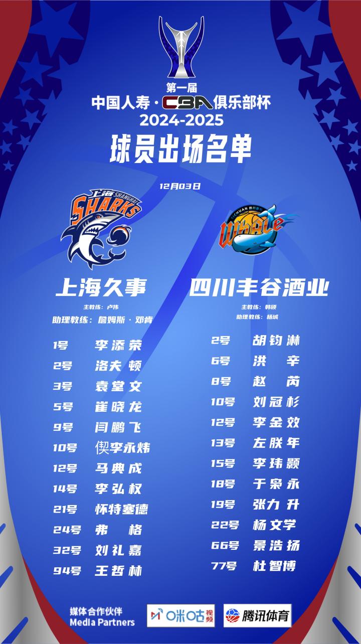 北京时间12月3日,CBA2025-26赛季俱乐部杯首个比赛日即将打响,CBA官网更新杯赛球队大名单。
